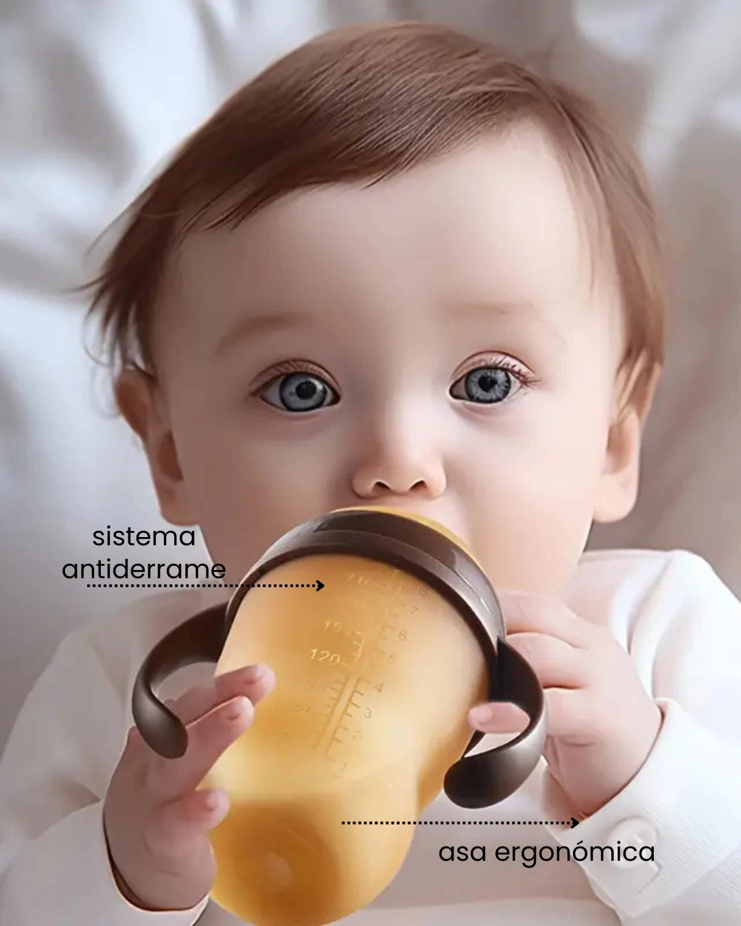 Su asa ergonómica permite que tu bebé la agarre fácilmente, mientras que el material de silicona es suave, seguro y libre de BPA. Perfecta para su uso diario en casa o cuando estás fuera.