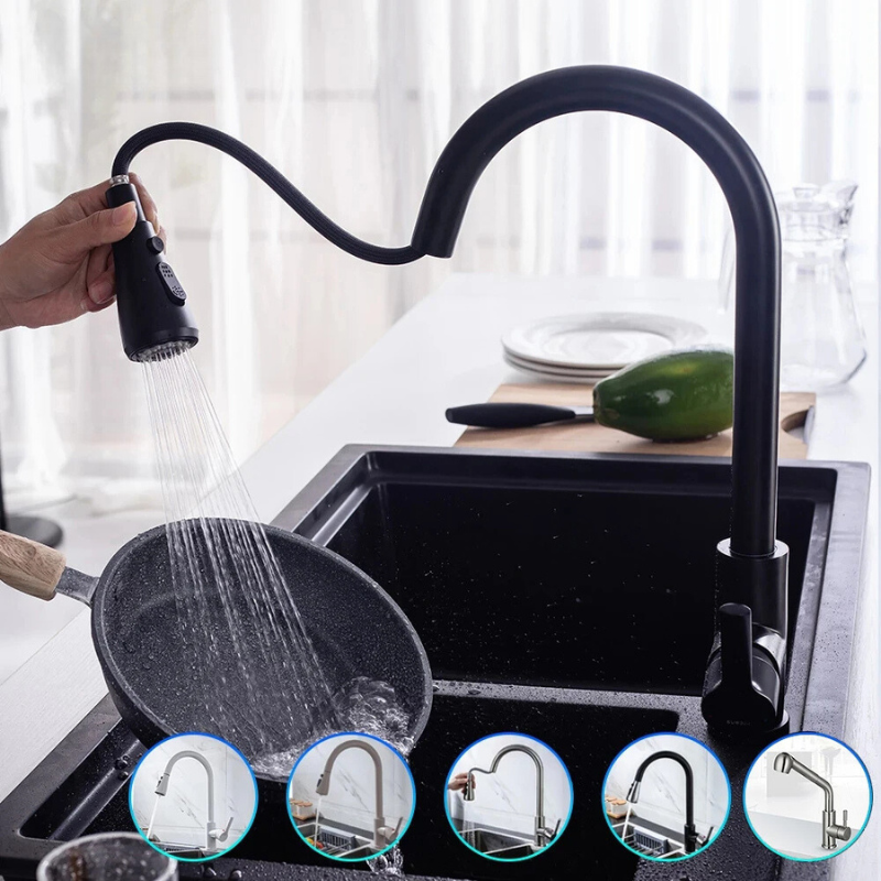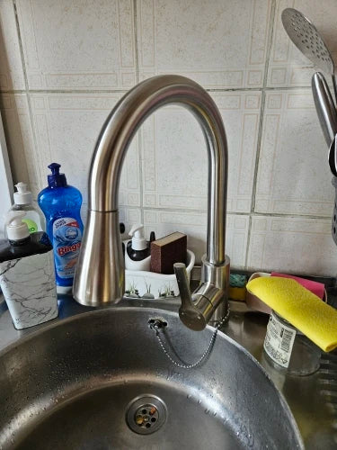 Es Elegante y Versátil, lava tus utensilios de cocina y los alimentos con su suave salida de agua, sin regueros ni desperdicio